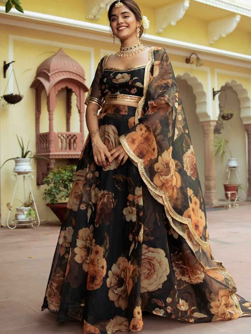 Green & Brown Printed Ready to Wear Lehenga & Blouse With Dupatta