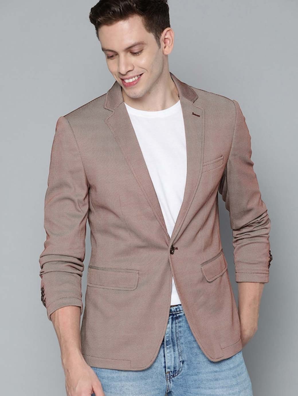 Brown solid single-breasted blazer, has notched lapel collar, long regular sleeves , button closure and 6 pockets