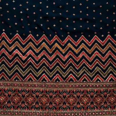 Navy Blue & Pink Embroidered Unstitched Dress Material