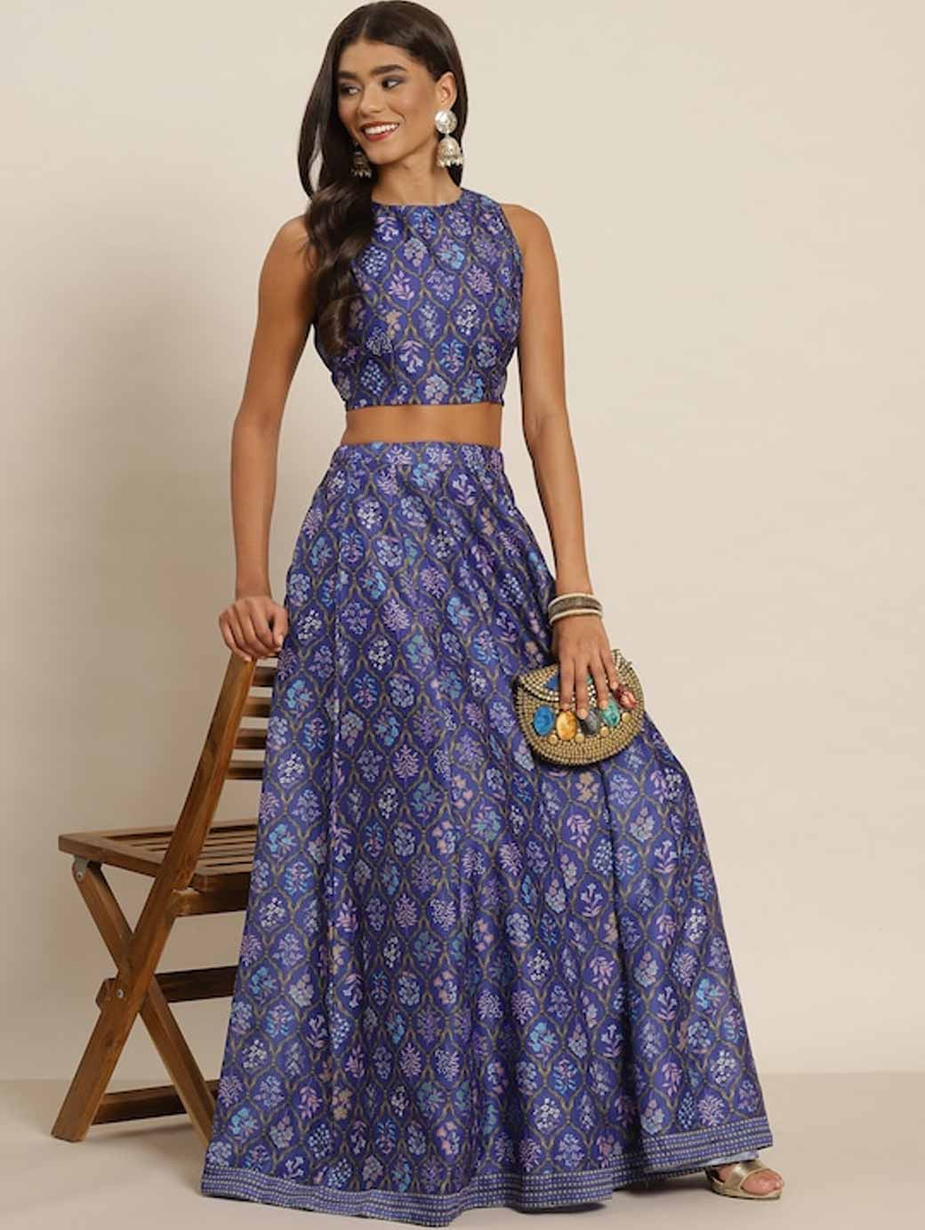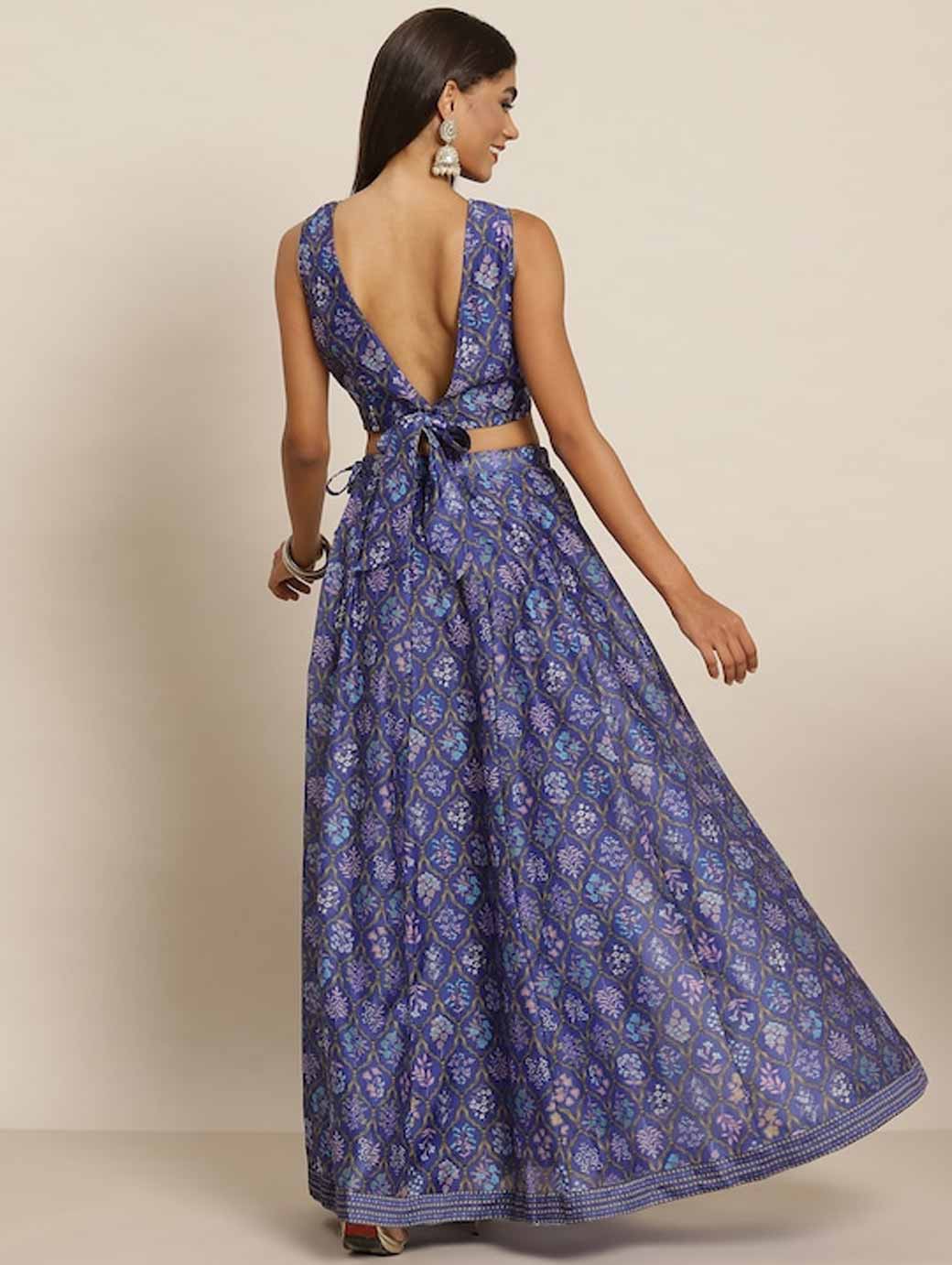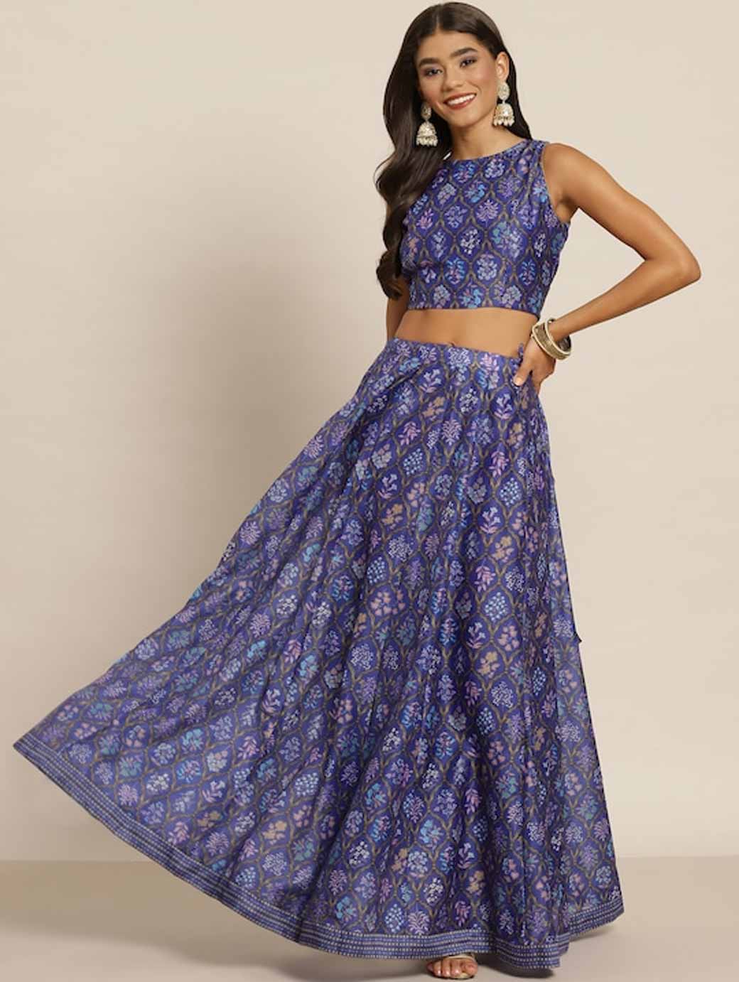 Purple and Blue Printed Ready to Wear Lehenga & Choli