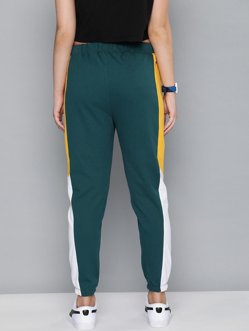 Green solid mid-rise cropped joggers with side panelling, has an elasticated waistband with drawstring closure